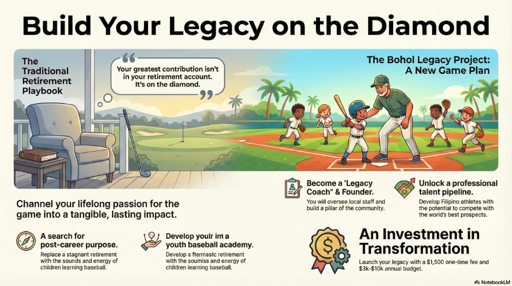 Your role as a baseball academy owner is that of a Founder and Legacy Coach. You’ll oversee a local coaching staff, instill a culture of excellence, and build a program that becomes a pillar of your adopted hometown in Bohol. This is how you embed yourself into the fabric of a place—not just as a retiree, but as a leader.
